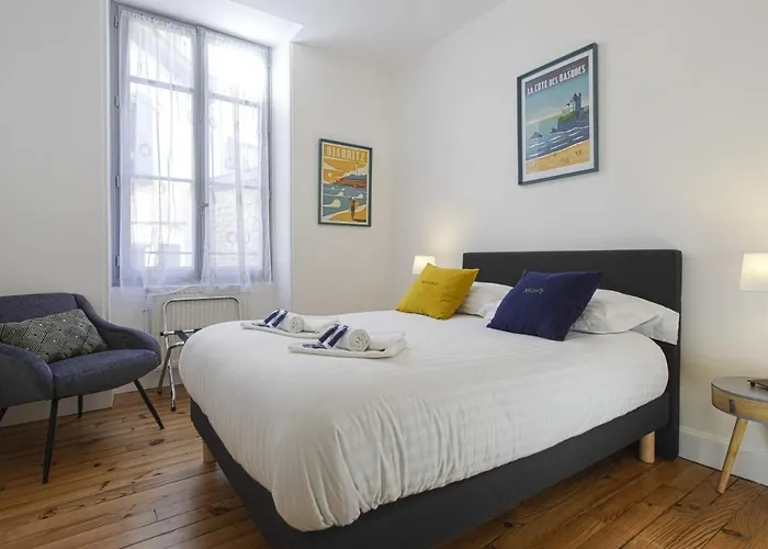 Die 80 m^2 große Ferienwohnung Superb And Calm T3 In The Heart Of Biarritz - Welkeys ist eine familienfreundliche Unterkunft im Zentrum von Biarritz, mit Blick auf die Stadt. Rocher de la Vierge liegt 14 Gehminuten von dem familienfreundlichen Apartment entfernt, während die Bushaltestelle Jardin Public in ca. 5 Gehminuten zu erreichen ist.